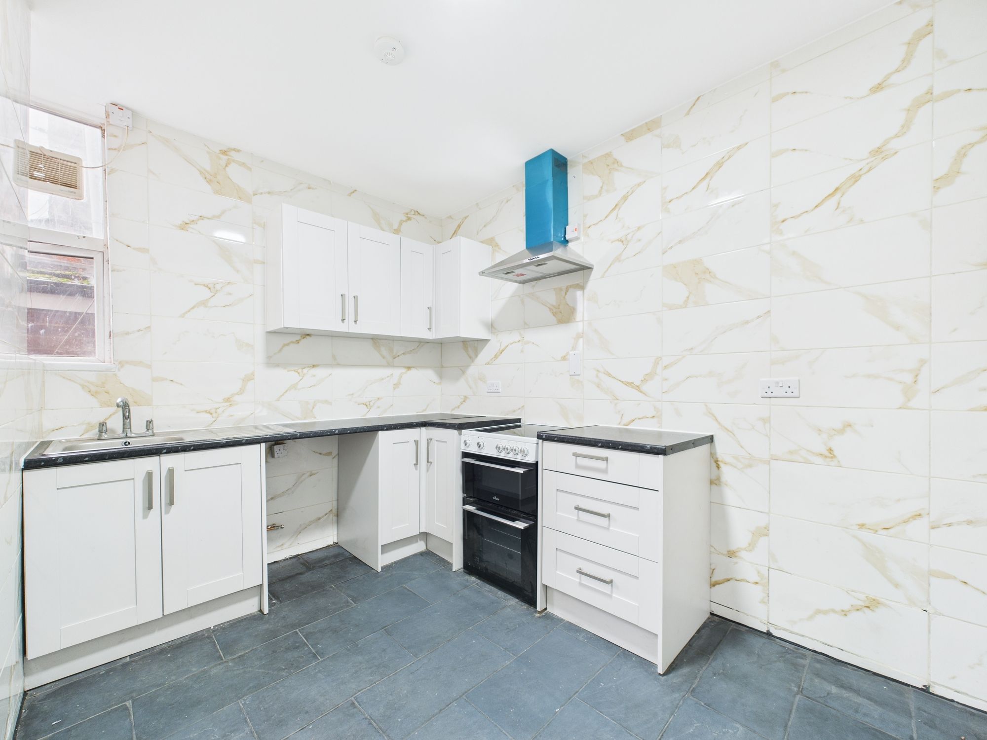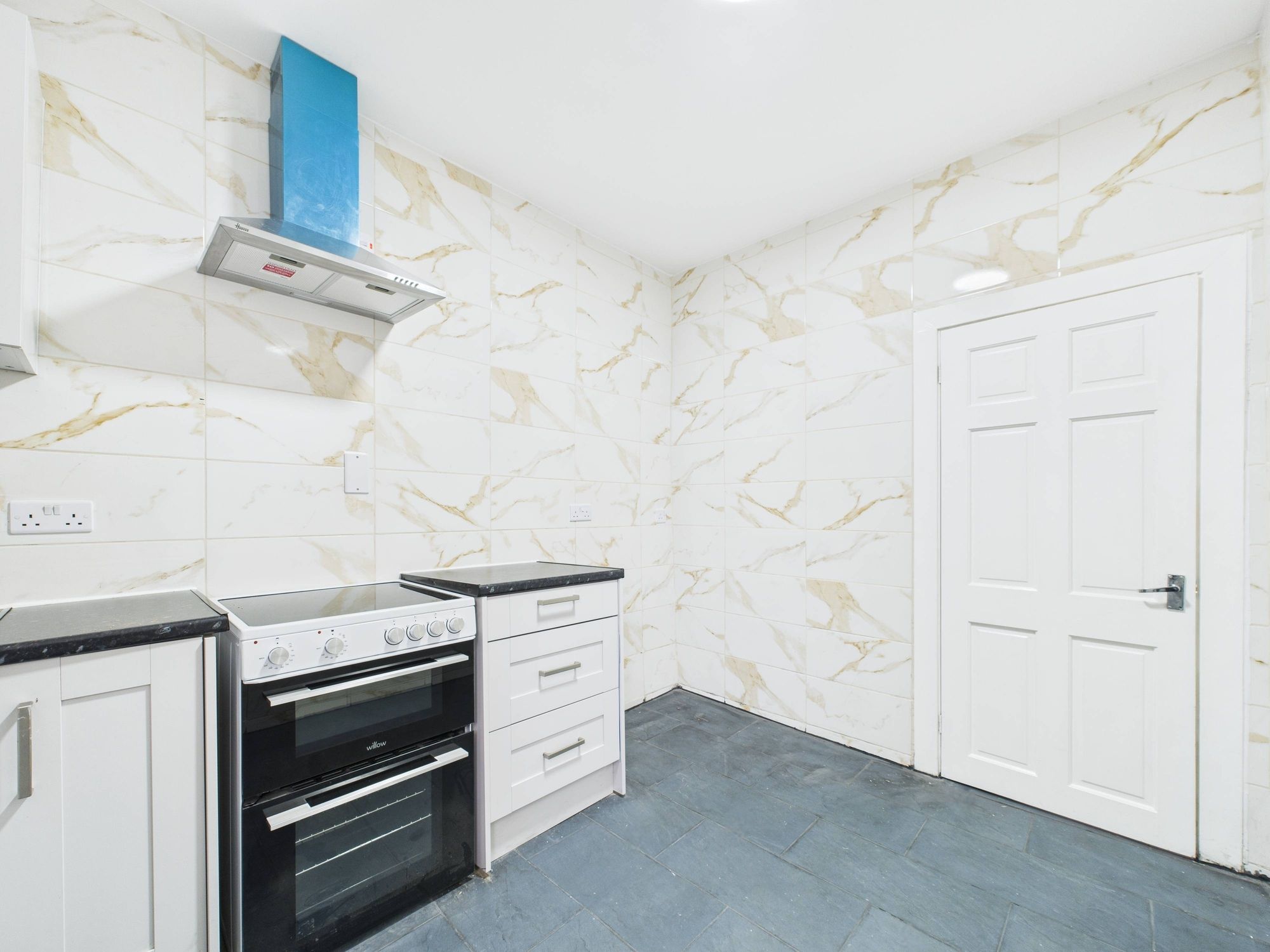 The MODERN FITTED KITCHEN, complete with oven and hob, also provides plenty of storage space and has plumbing for a washing machine and room for a freestanding fridge freezer.