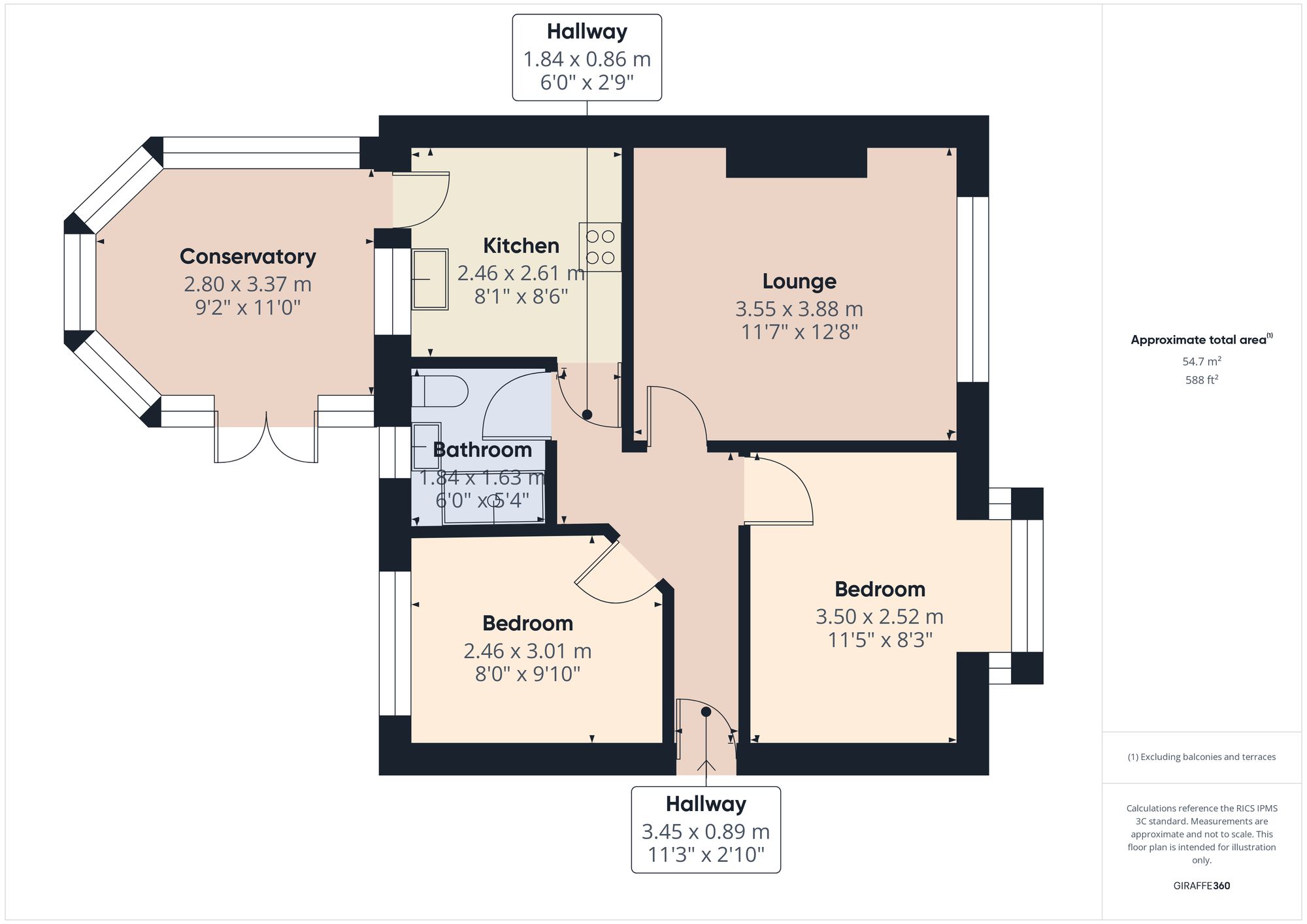 The FITTED KITCHEN provides good storage and workspace, opening onto a BRIGHT CONSERVATORY with views over the rear garden — an inviting area with excellent potential.