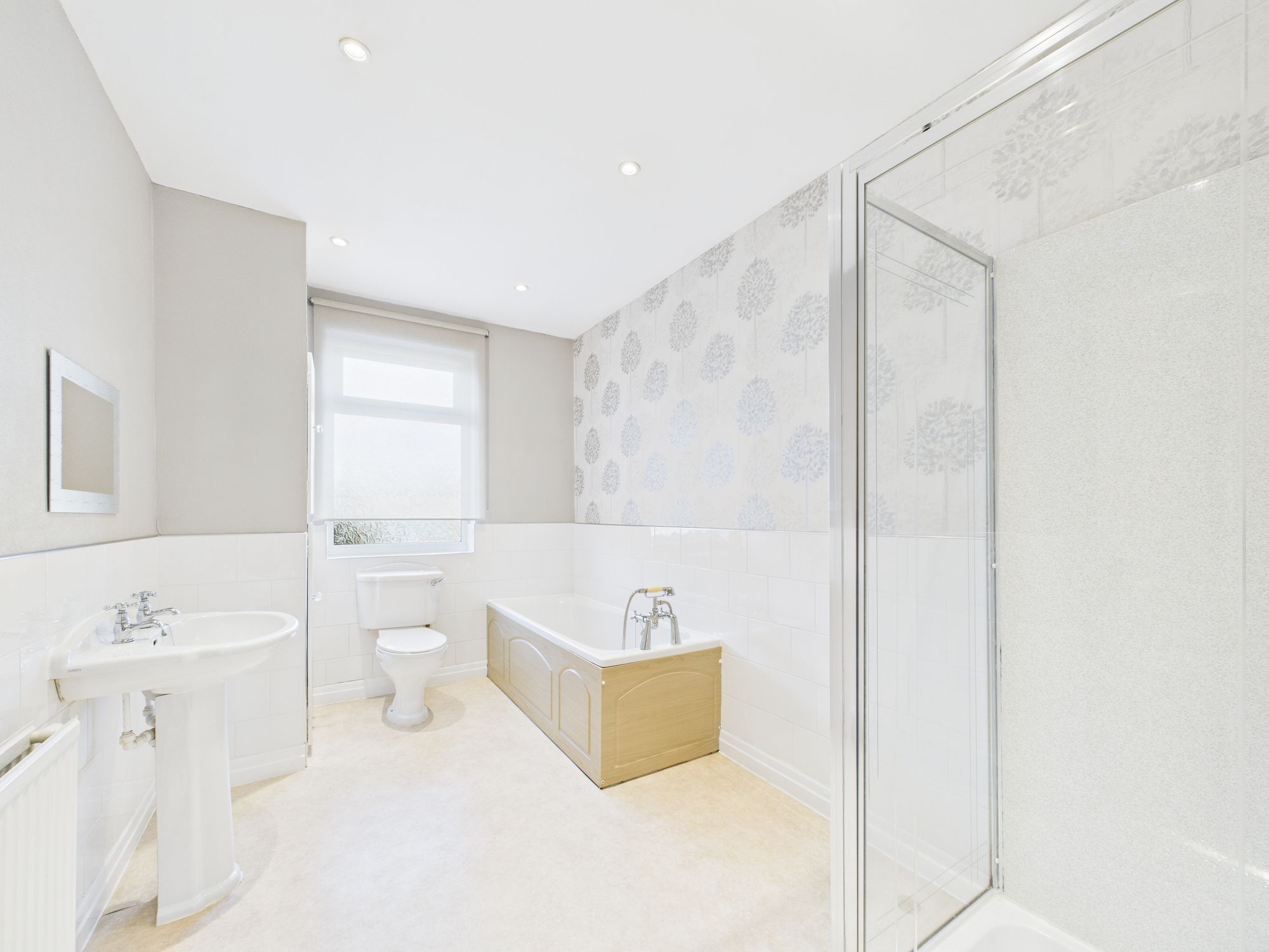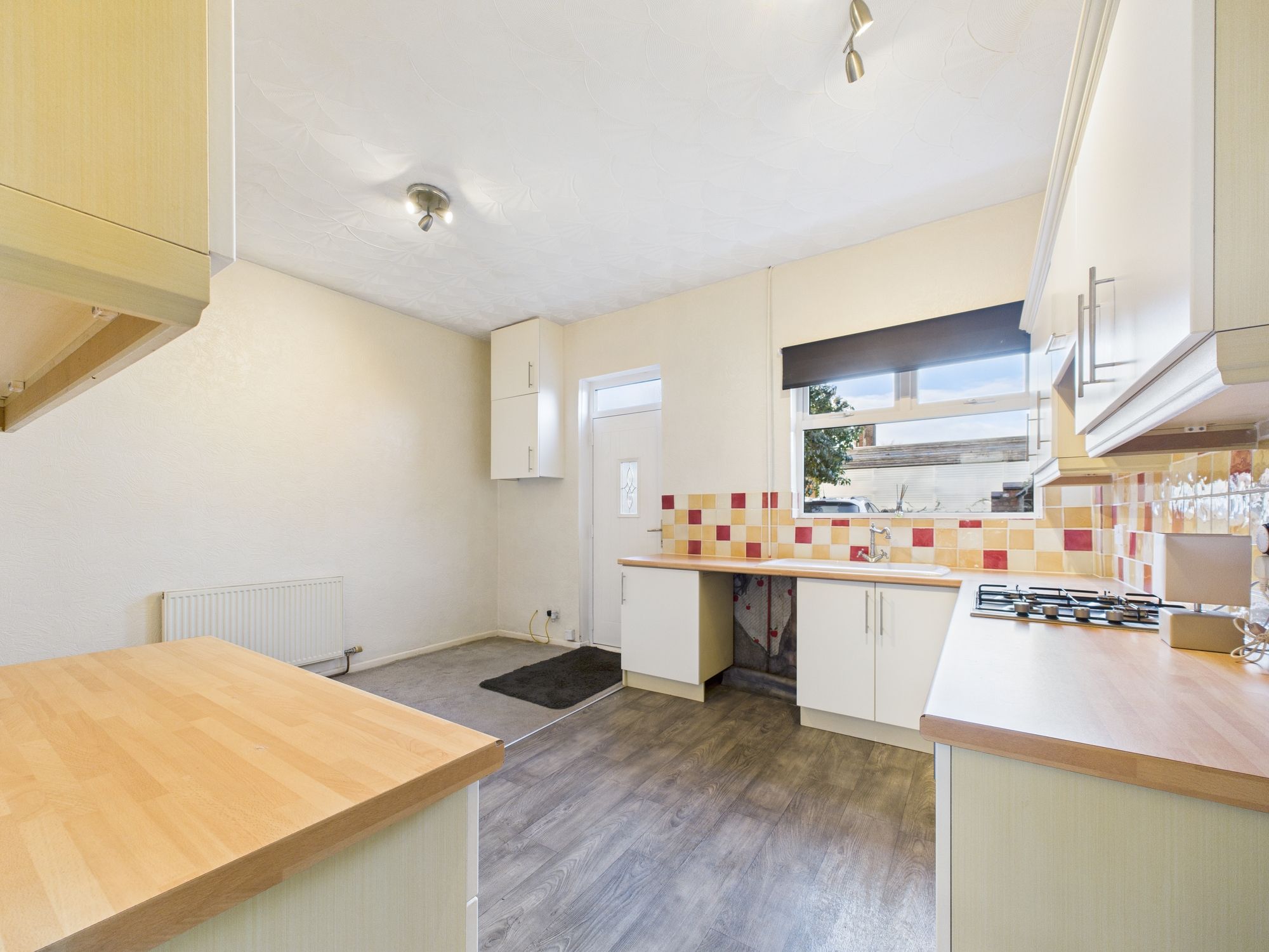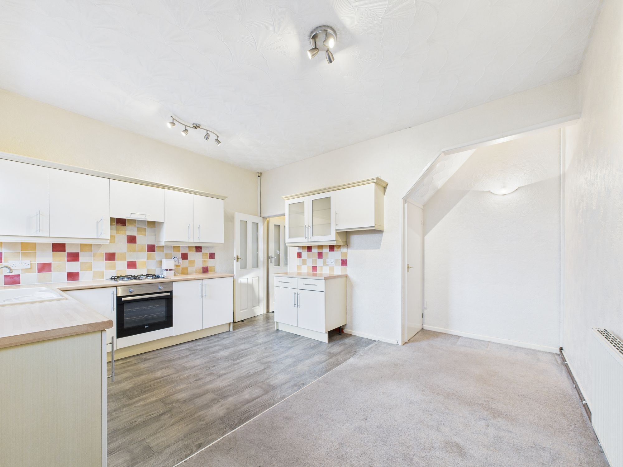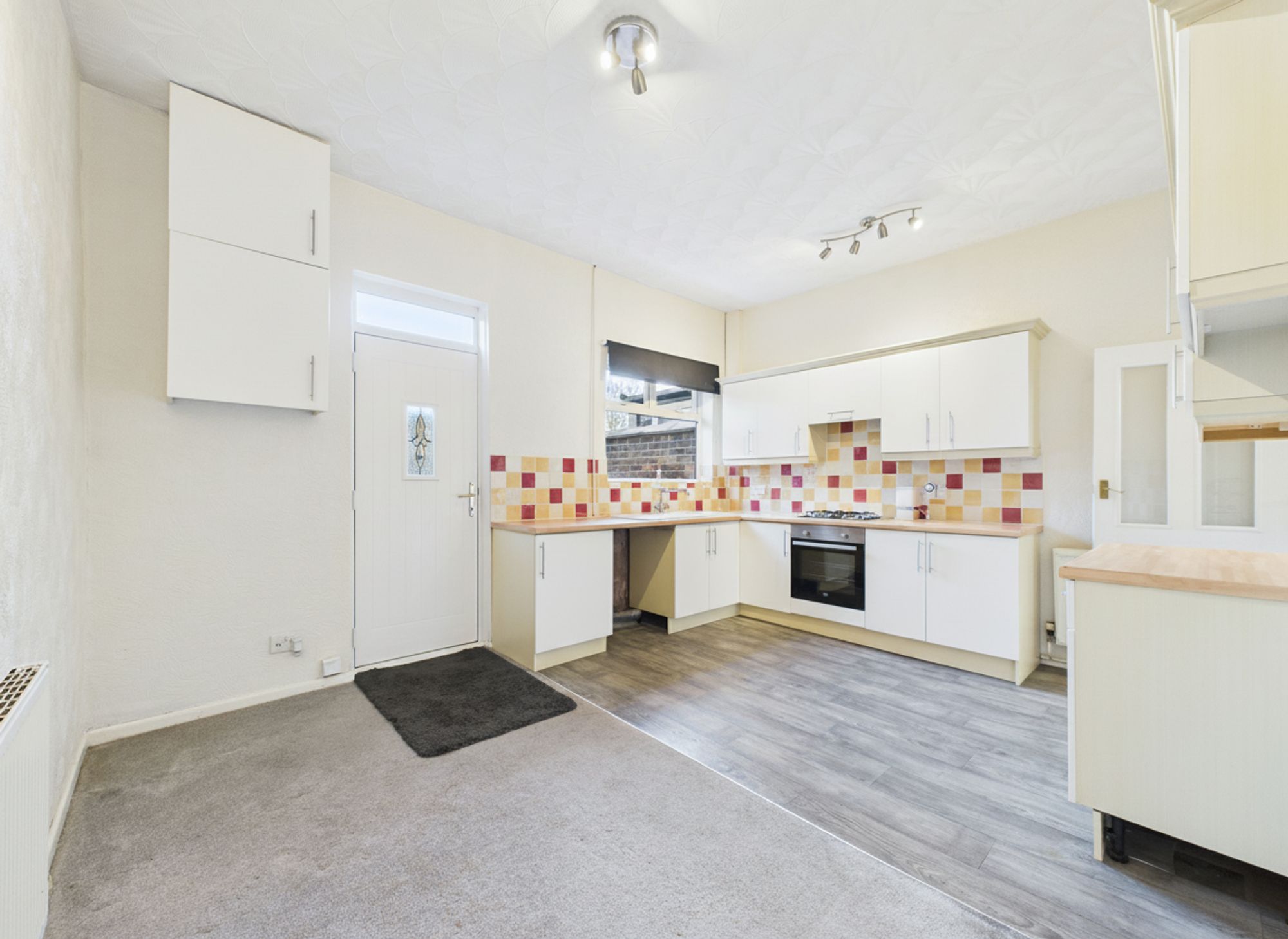 To the rear, is a large, open plan KITCHEN/DINER. The FULLY FITTED KITCHEN provides ample storage space, and is complete with integrated hob, oven and overhead extractor. There’s space for a freestanding fridge freezer and plumbing for a washing machine. There’s plenty of space for family dining, combining practicality with modern functionality.