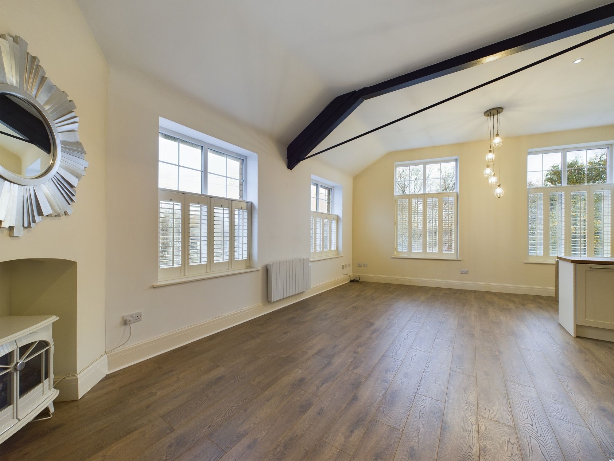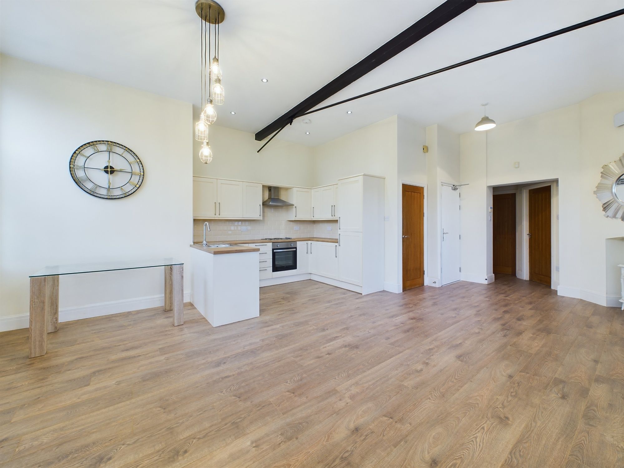 Nestled in the heart of the highly sought-after LOWER GREEN area, this traditional, TWO BEDROOM first-floor APARTMENT offers a charming blend of elegance and modern convenience. Boasting a PICTURESQUE VIEW overlooking the serene canal, this beautiful residence is a true gem. Step inside to discover a large, light-filled LOUNGE that invites relaxation and entertaining. The modern FITTED KITCHEN/BREAKFAST AREA, complete with integrated appliances, is ideal for preparing meals, while the separate UTILITY ROOM adds practicality to this impressive space. TWO spacious DOUBLE BEDROOMS are complemented by a contemporary FAMILY SHOWER ROOM. The apartment has been enhanced with new flooring and fresh decor throughout. QUIRKY FEATURES such as large windows and high beams ADD CHARACTER and UNIQUNESS to this stunning property.