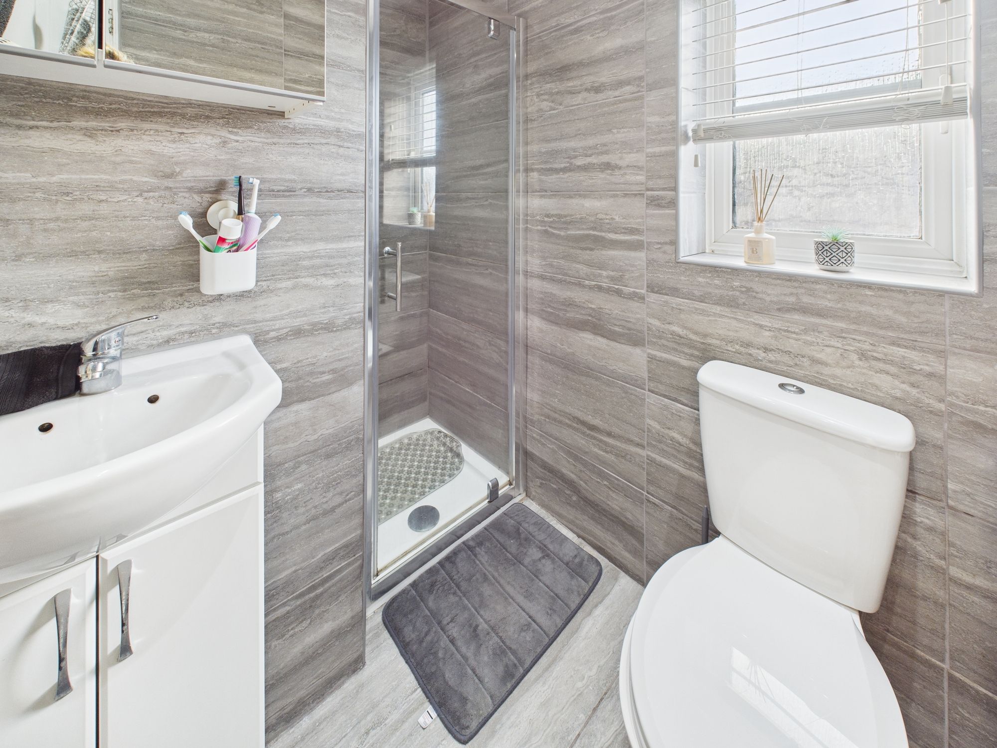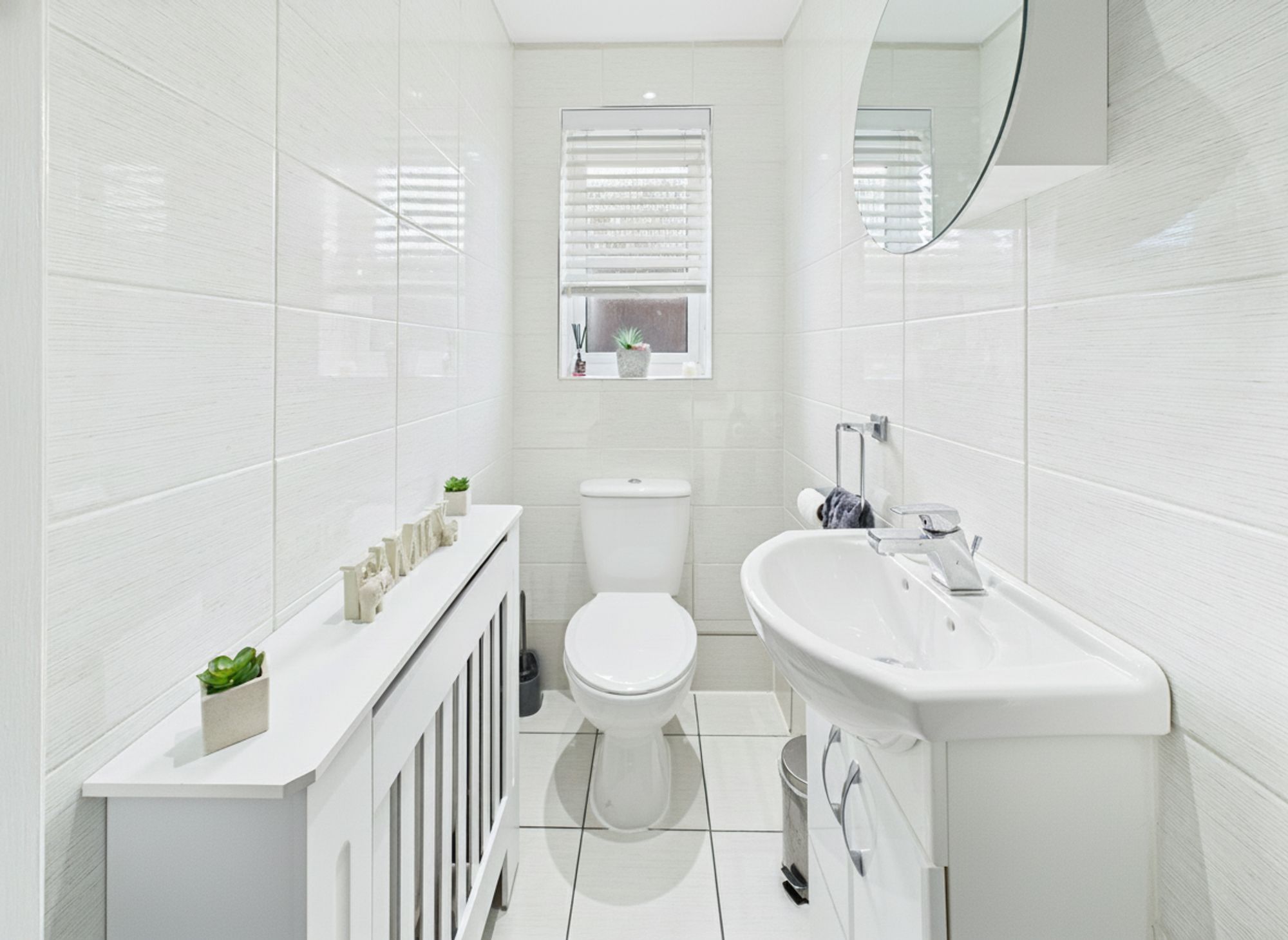 Convenience is key with the property featuring a handy DOWNSTAIRS WC. Upstairs, you’ll find THREE GOOD SIZED BEDROOMS, with the MASTER boasting an EN SUITE for added convenience. The LUXURY, WHITE SUITE FAMILY BATHROOM offers a soothing retreat after a long day.